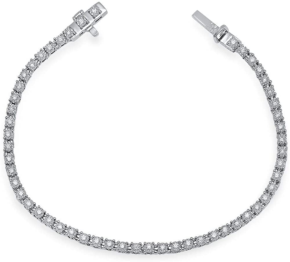 1.0 ct Round Cut Baguette Cut X-Ring Bracelet in .925 Sterling Silver (I-J Colors, I1-I2 Clarity) - 17.78 cm