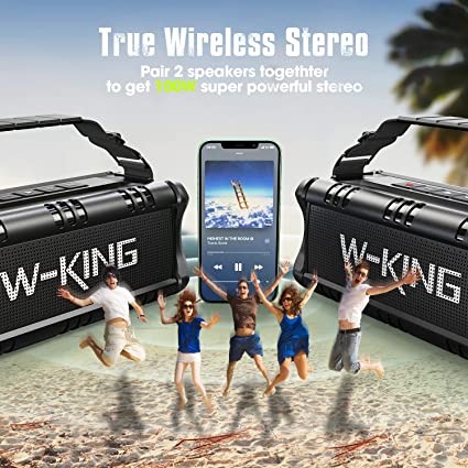 100W Powerful Beast Stereo - Easily pair two portable speakers to instantly upgrade to 100W stereo surround sound. Powerful Bluetooth speakers bring sound to life for a fantastic dynamic audio experience. When you listen to music, watch movies or play games, two powerful bluetooth speakers create left and right channels to instantly bring you extraordinary clarity and detail