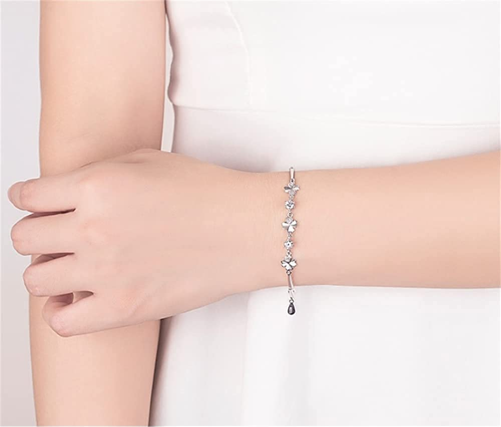 Clear Cubic Zirconia Heart Clover Flower Bracelet For Women Girls 14K White Gold Plated Cubic Zirconia Birthstone Heart Pendant Adjustable Rectangular Bamboo Chain Fashion Exquisite Jewelry Gifts Birt