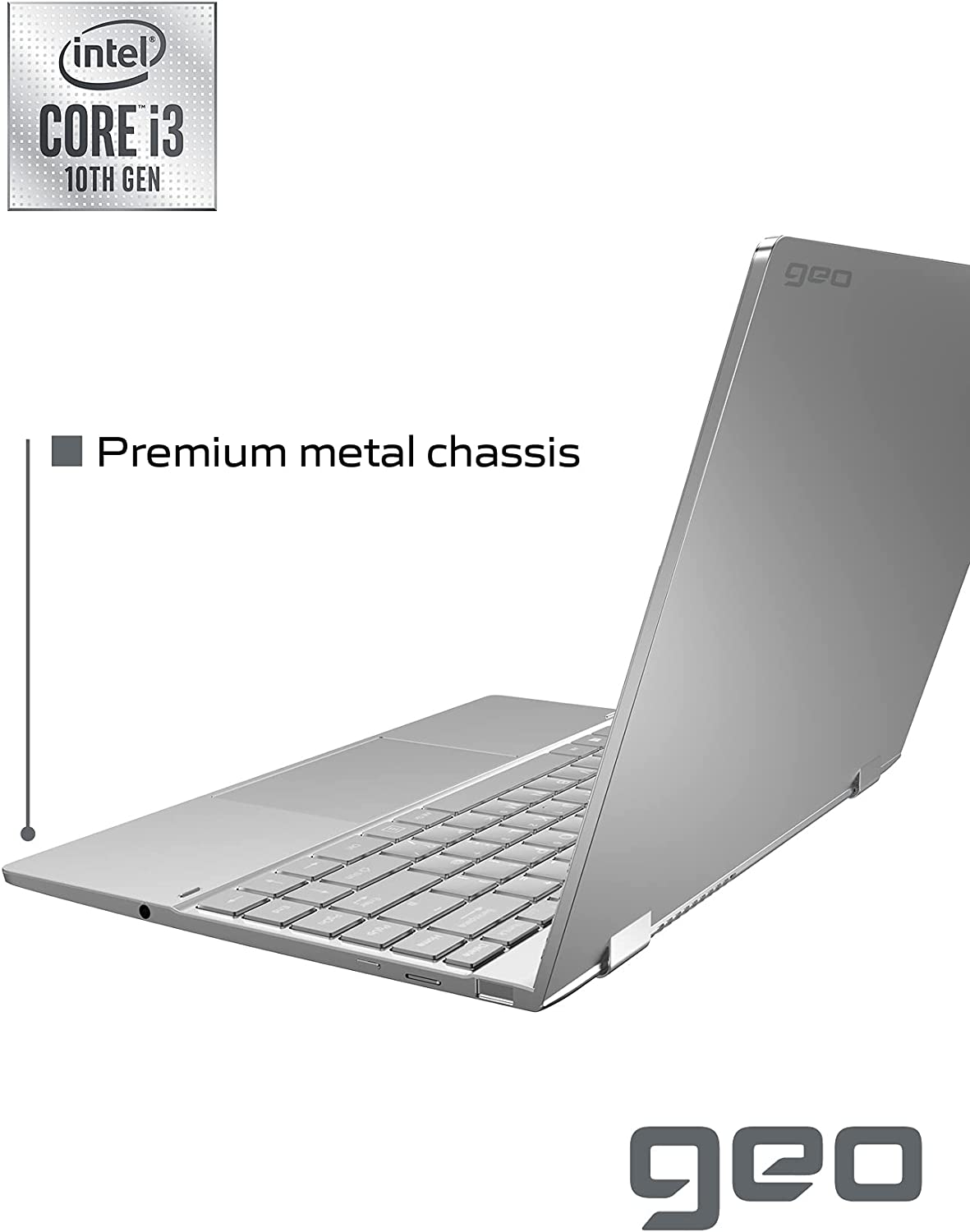 • GeoFlex 340 is a 14.1" convertible metal laptop with touchscreen, offering versatility, style and performance in one slim and lightweight package.