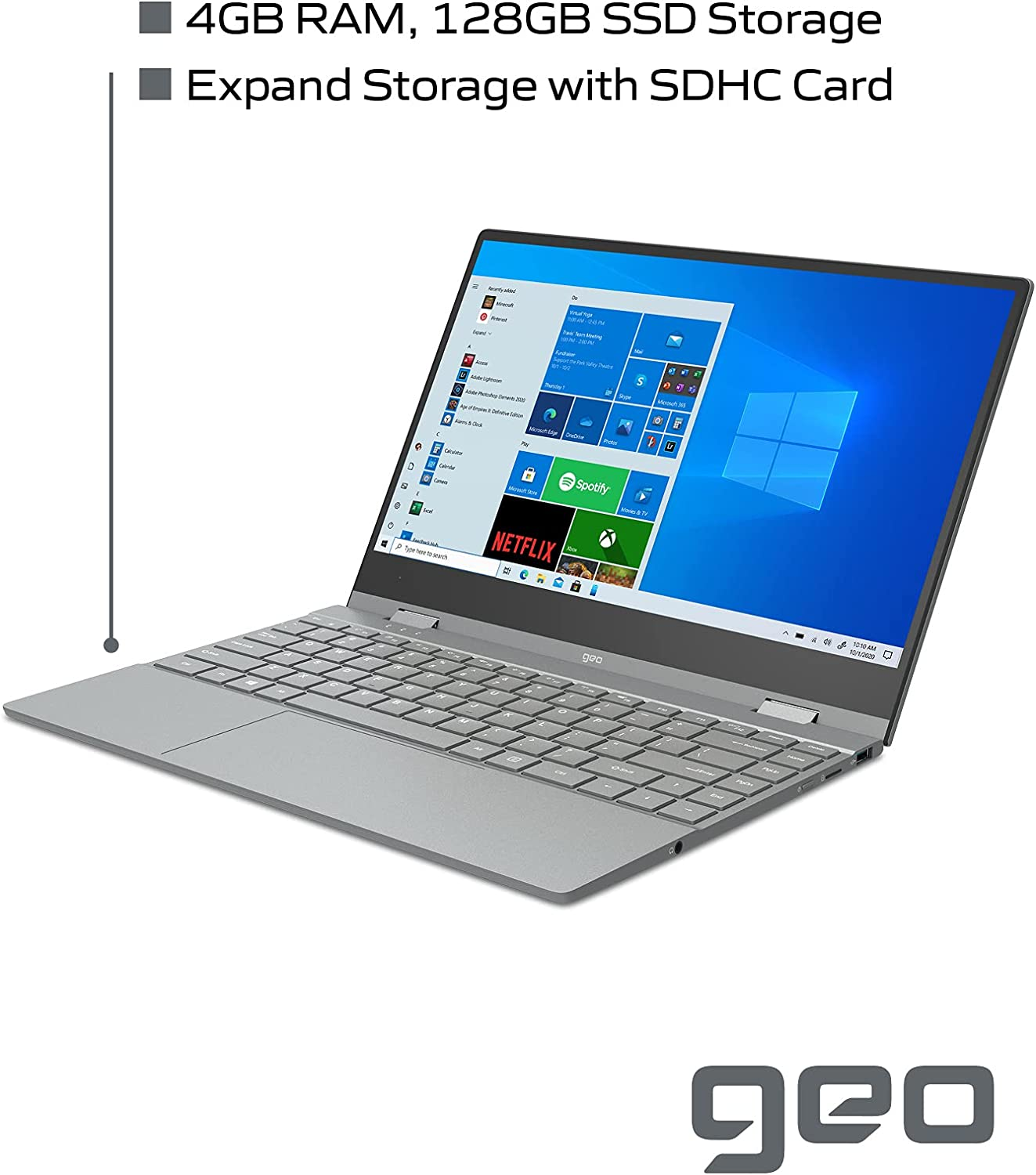 GeoFlex 340 14.1" Convertible Laptop with Touch Screen Windows 10 Intel Core i3 4GB RAM 128GB SSD