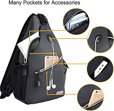 AmHoo Sling Backpack Chest Shoudler Crossbody Bag Water Resistant Hiking Daypack